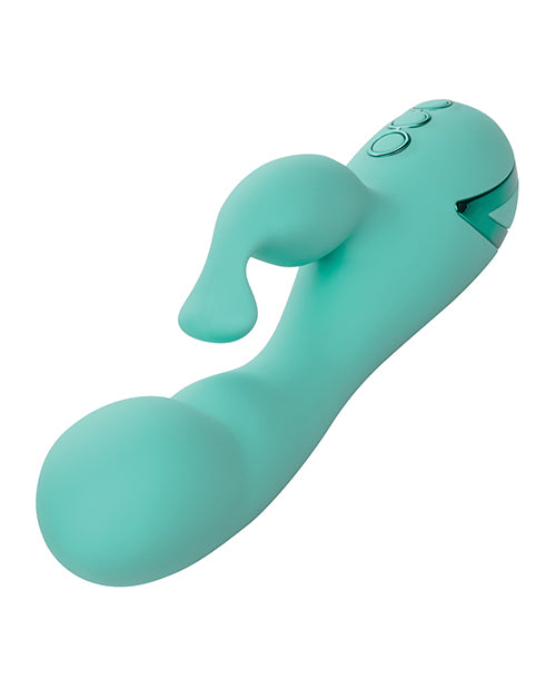 California Dreaming Tahoe Temptation Vibrator from California Exotic Novelties. Take your Tahoe trip from the bedroom, with the California Dreaming Tahoe Temptation. This double vibration machine has a deep rumble in the head and shaft, and the attached external teaser is sure to deliver you to pure mountain top pleasure. The powerful rumbling massager contains a flickering pinpoint teaser designed to cover all of your most sensitive areas with the exact amount of pleasure you are looking for. With 3 speeds of deep rumbling in the sensually curving shaft of this adult toy, you can rest assure that you will not be spending your time here resting. The additional 10 functions in this vibe of independent vibration, pulsation and escalation in the stimulator will help you achieve your maximum sexual wellness. The state of the art memory chip will resume on the last function used, and the automatic travel lock will help you be sure the device is on only when you want it to be.This massager can be used solo or as a couple, and the body safe silicone will take your mind off everything else. A USB rechargeable cord is included, and will recharge the device completely in just 2.5 hours. With a run time of 40 minutes on the highest settings and 2.5 hours on low, you can always be certain that this toy is ready to keep going and going.