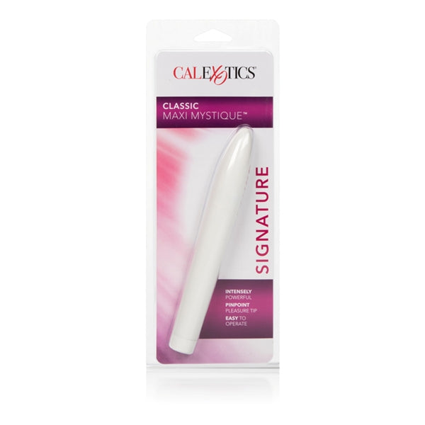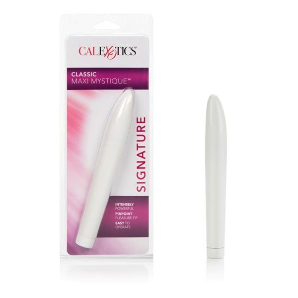 Classic Chic Maxi Myst Vibrator 7 Inches. Powerful, sleek and smooth vibrators in the most popular sizes. Multiple speed vibrator. Safe and pure for body and pleasure. Made using phthalate free, non-toxic materials: ABS plastic. Bulk weight 1.9 ounces. Vibrator measures 7 inches long by 1 inch wide. Vibrating sex toy requires 2 AA batteries, not included. Do not leave batteries in the vibrator between uses. Always clean before and after use. Category: For Women, Vibrator, Vibrators. Classic Chic Maxi Mystique is a registered trademark for California Exotic Novelties. Sex toys and sexual wellness. 16.