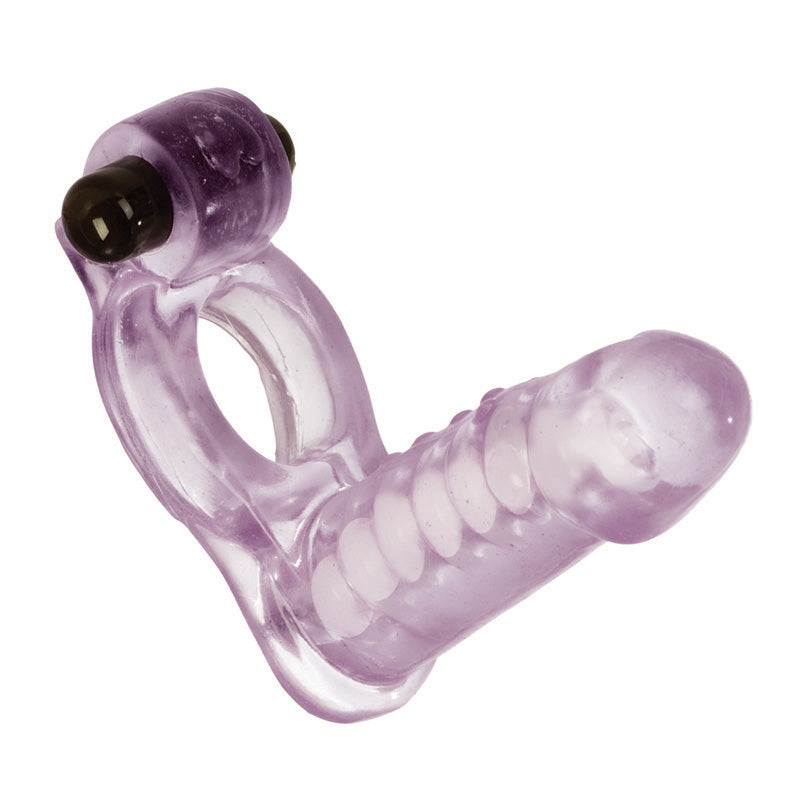 Double Diver Ring is waterproof for play outside the bedroom. Enhancer gives ample support for him with powerful vibrations for her. Flexible penetrator with bendable shaft for perfect double diving positioning. 3 speed removable wireless push button bullet. Sturdy ring with double penetrator. Safe and pure for body and pleasures. Made using unscented phthalate free, non-toxic materials Thermoplastic Rubber TPR ring, penis diver, ABS plastic stimulator. Soft, stretchy and comfortable. Batteries: 3 watch size batteries to power up, 6 included. Double penetrating cock ring measures 4 inches long by 1.2 inches. Stimulator measures 2 inches long by .75 inch wide. Double Ring, Cock ring, prolong ring. Always clean before and after use. Double Diver is a registered trademark for California Exotic Novelties. Sex toys and sexual wellness. New high resolution images added.