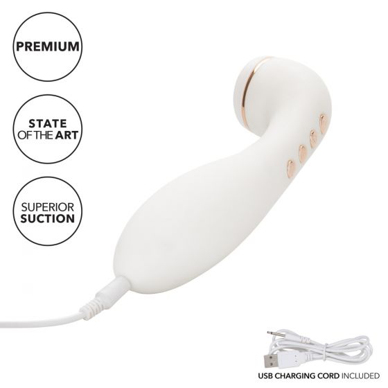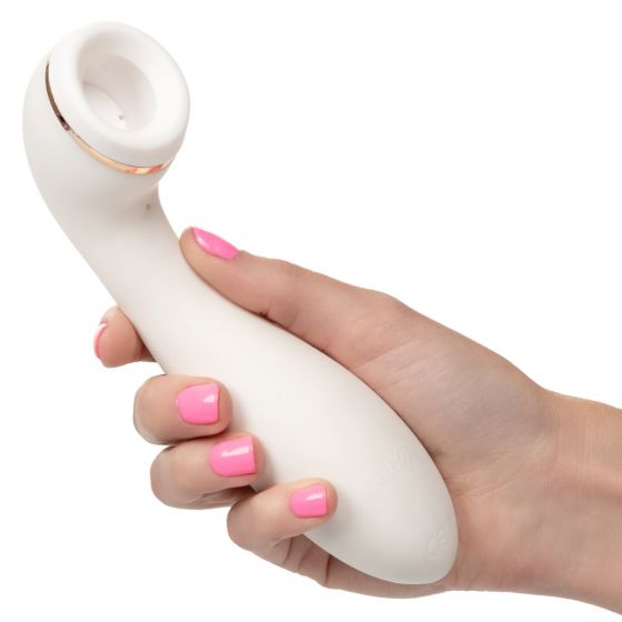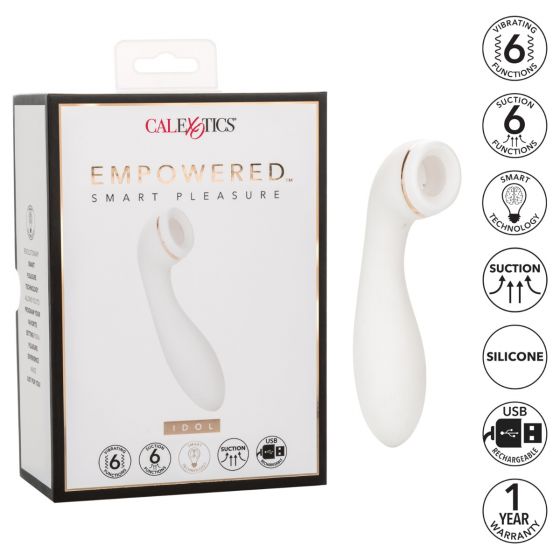 Empowered Smart Pleasure Idol from California Exotic Novelties. Feel empowered with pleasure in 36 different ways revolutionizing how you enjoy your personal time with the Empowered Smart Pleasure Idol. This Idol offers a truly smarter pleasure experience. With a constant suction feature, you can find the exact suction level your body craves. Then explore 6 unique functions using the suction power you set. Want more? Turn on the vibration and experience 6 ways to vibrate, pulsate and escalate your desire. When you are alone and know exactly what you need, empower yourself with the Smart Pleasure Idol, offering up to 140 minutes of intense pleasure before recharging. Just sit back and relax, this pleasure experience was made just for you! Discreet storage bag is included for when you want to bring pleasure with you, but want to keep things private. Easily recharged with the included USB cord with complete charge in just 2 hours.