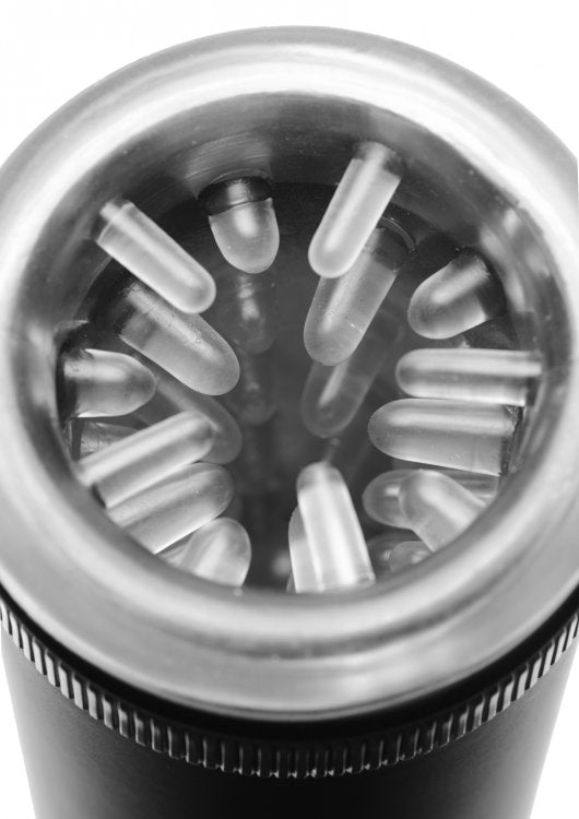Lovebotz line Master Bot Super Powered Automatic Stroker from XR Brands. Super powered male masturbator that does the hard work for you! Enjoy ultimate masturbation sessions with the push of a button, or add to the experience with your own stroking action. Within the hollow chamber is a soft sleeve that wraps around your rod and heightens the experience with rows of strategically placed ticklers that will massage your rod as you stroke. With the simple two speed controller switch, and the exhilarating textured interior, you are assured an explosive finish with the height of stroker technology. Simply lube up, slide in, and let Master Bot do all the work! Measurements: 9.75 inches in length, 4.5 inches insertion, 2 inches in diameter. Material: ABS plastic, Thermoplastic Rubber TPR. Color: Black. Requires 4 AA batteries, not included. Categories: Male Masturbators, Vibrators, Masturbation Hands Free, Masturbation Sleeves, Sex Toys for Men. Video. 2023.