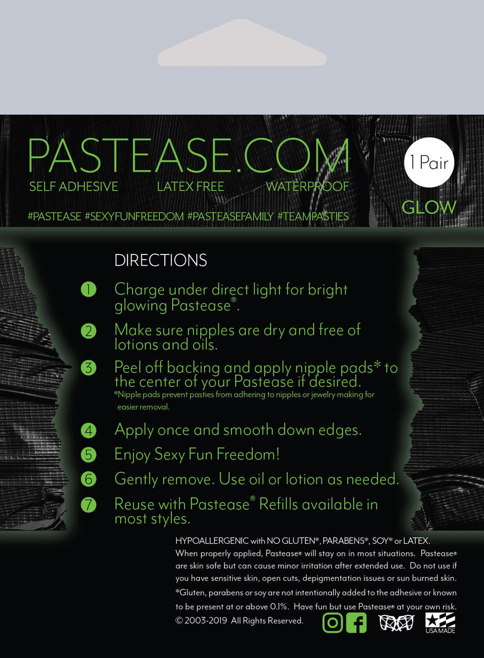 Just peel and stick on clean, dry skin. All Pastease feature latex free, medical grade, waterproof adhesive that stay securely in place for as long as you like and until they are gently removed.
