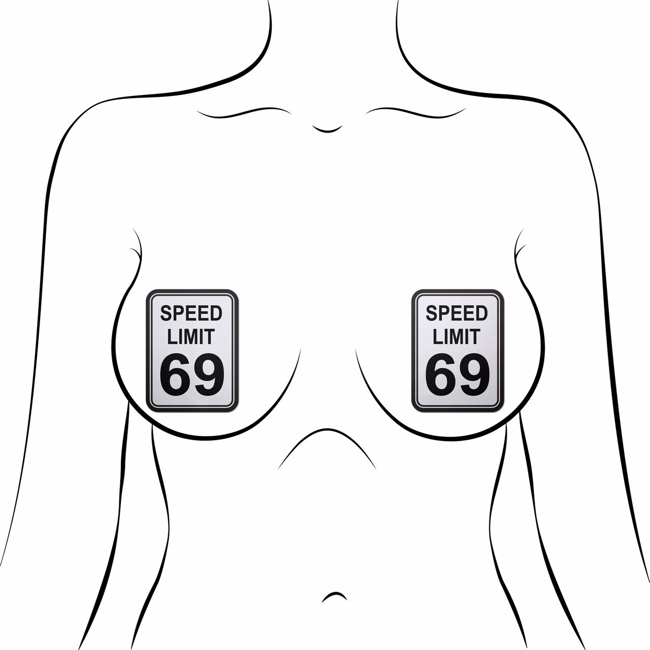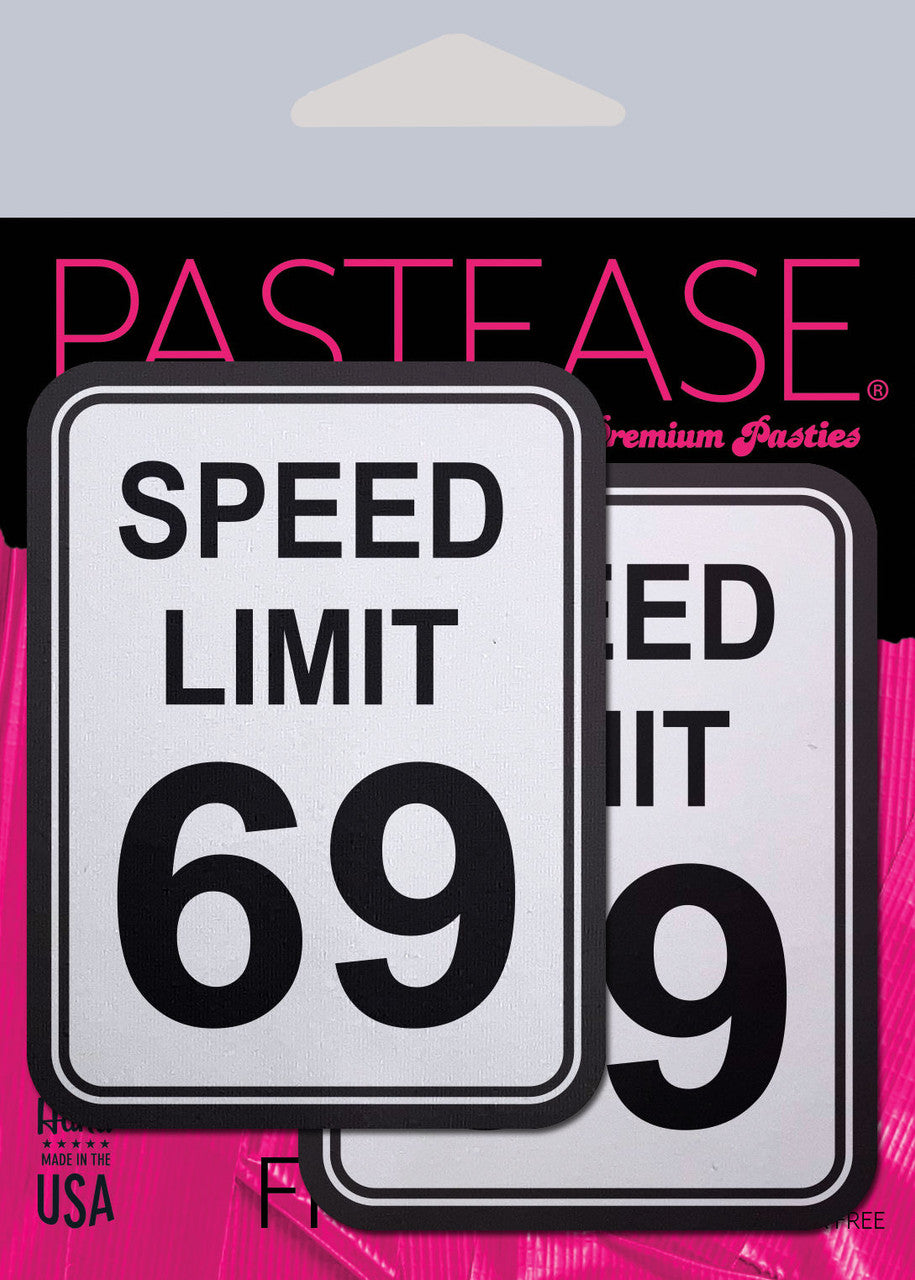 Pastease Brand Speed Limit 69 Pasties. Speed Limit 69 Nipple Pasties by Pastease. Speed Limit 69 Nipple Pasties by Pastease are hand made in the USA of soft form fitting material that forms seamlessly to curves and resists wrinkling over hardening nipples. Just peel and stick pasties on clean, dry skin! All Pastease pasties feature latex free, medical grade, waterproof adhesive that stays securely in place for as long as you like and until they are gently removed. Conceal or reveal with Pastease nipple pasties when worn with a sexy outfit, daring bikini, sheer top, revealing dress, Hefty bag, body lotion, crazy costume, party theme or nothing at all! Dimensions 2.3 inches by 3 inches. Coverage 2.3 inches. Pastease are the Funmaker that brings out your inner Tease! All Pastease products are hand made, so the finished product you receive may vary slightly from the posted image. Go get your Sexy Fun Freedom On! XXX Pastease! Categories: Lingerie and Clothing, Sexy Costume Accessories, Nipple Play, Pasties and Accessories. Restricted, Amazon Restricted. 2022.