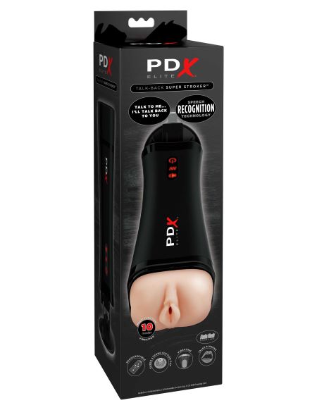 Specifications: Rechargeable Lithium Battery, included. Materials Thermoplastic Elastomer TPE, ABS Plastic. PDX Elite Talk Back - Super Stroker - Talk Dirty Masturbation Device for Men. Categories: Male Masturbators, Rechargeable Vibrators, Masturbators, Pussy, Talks, Vibrates and Moans. Restricted, Amazon Restricted. 2022.