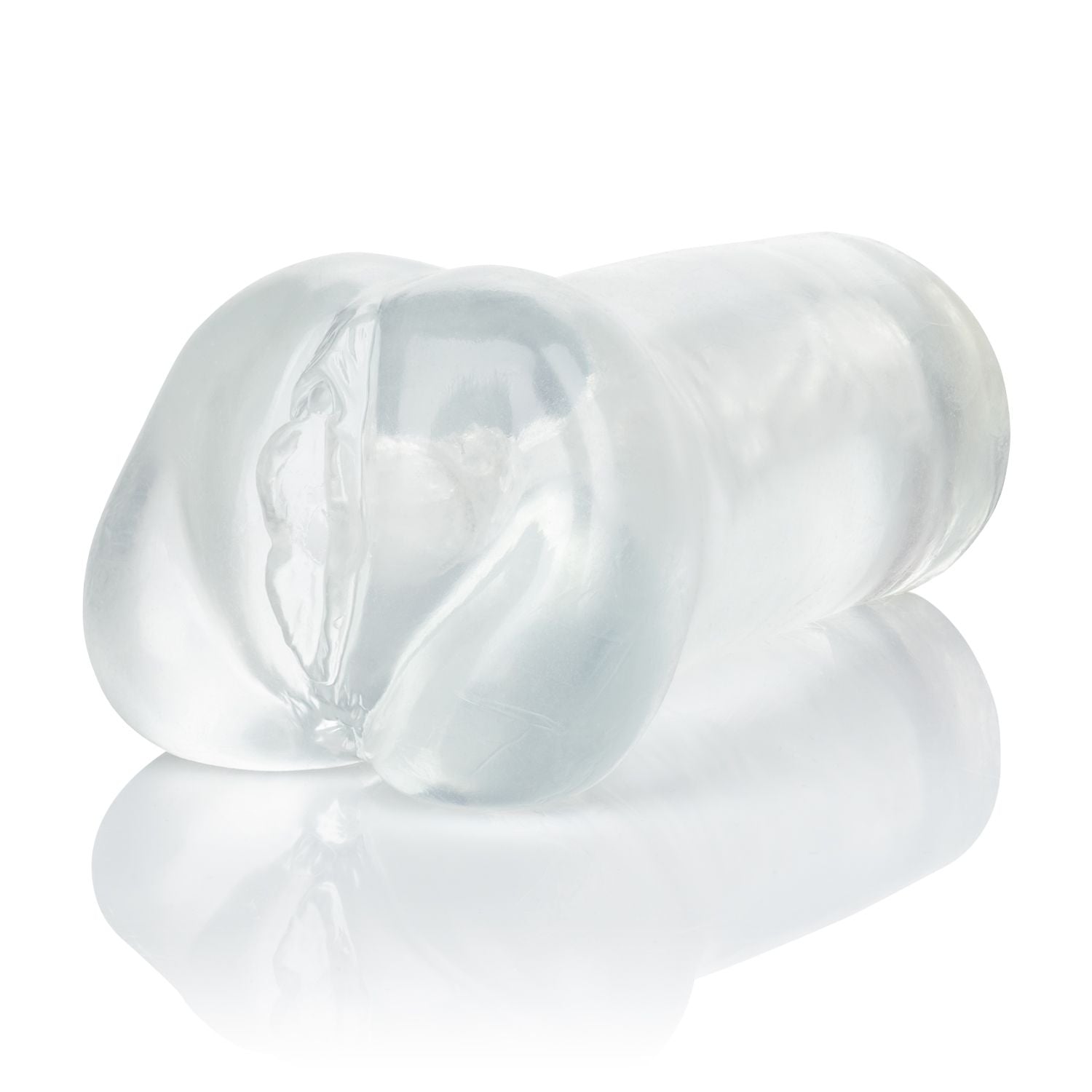 Specifications: color Clear. Materials Thermoplastic Elastomer TPE. Phthalate free. Allergens N/A. 90 Day Warranty. Measurements 6.5 inches by 3.5 inches masturbator. Bulk weight 15.2 ounces. Package 17.5 ounces. Package size 3 inches by 4.5 inches by 8.75 inches.
