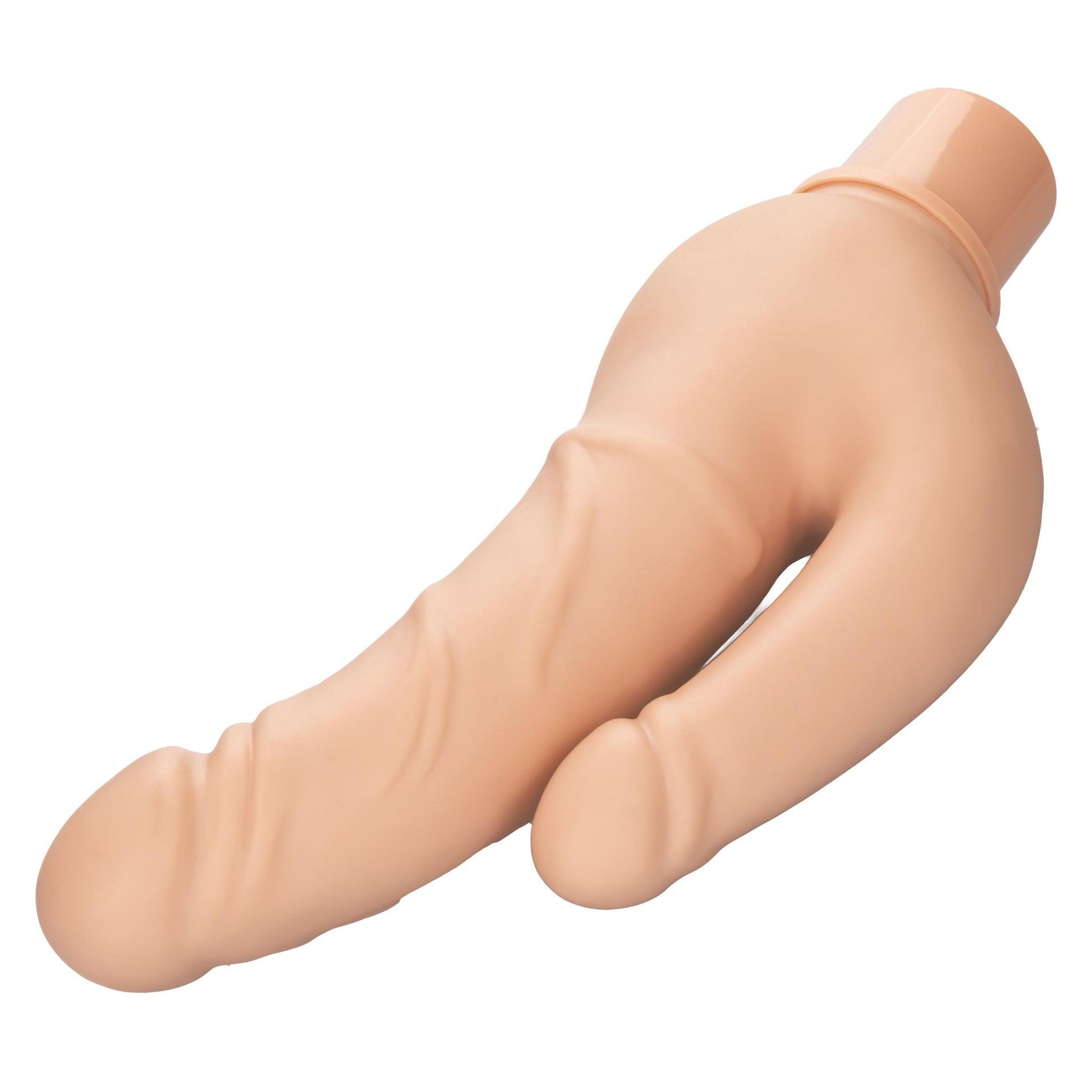 Rechargeable Power Stud Over and Under Brown Vibrator from California Exotic Novelties. Thrust yourself towards earth shaking pleasure with the rumbling Rechargeable Power Stud Over and Under. The power packed dual penetrating vibrator features two dual flexible shafts and 12 functions of vibration. Push yourself deep into ecstasy with the unique dual dong design for dual penetrating play time. The flexible, yet rigid shafts and soft supple Silicone deliver a truly realistic dual penetration experience. The powerful motor located in the tip of the massager delivers deep, rumbling vibrations. Whether you are taking a dip with a lover or indulging in a steamy solo session, look forward to up to 1 hour of waterproof vibration. Recharge pleasure and get back to playtime in only 1.5 hours with the provided USB cable. Embrace up to 1 hour of vibrations on low speed and 30 minutes on high speed. The flexible massager is made from a hygienically superior silicone. The body safe material is unscented and phthalate free to keep your most sensitive spots happy and healthy.