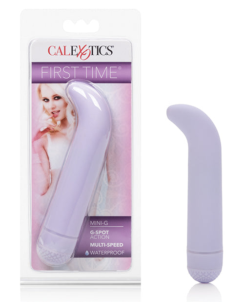 First Time Mini G Vibe . Velvety soft pleasure products designed for first time or experienced users. Make it a memorable experience with the First Time Collection! Velvety soft, power-packed, and easy-to-use. Multiple-speed class vibrator. Phthalate free, non-toxic materials ABS plastic with polyurethane PU Cote. Vibrating sex toy requires 1 AA battery, not included. Mini G Vibe measures 4.5 inches by 1 inch wide. Bulk weight: 2.2 ounces. Waterproof vibrations for play outside the bedroom. First Time Mini G Vibe from California Exotic Novelties. Sex toys and sexual wellness. Video.