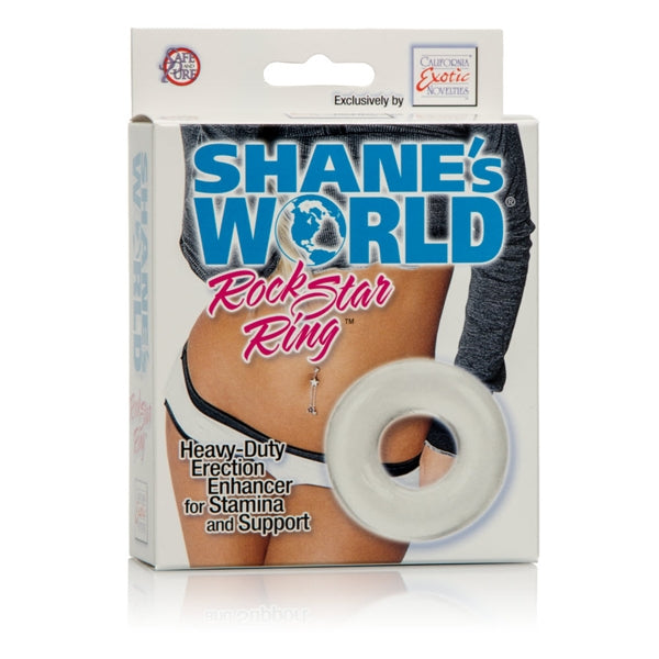Sex, toys and rock and roll collection. Shane's World Rock Star Ring Erection enhancing rings for comfortable support and increased girth. Safe and pure for body and pleasure. Made using phthalate free, non-toxic materials Thermoplastic Rubber TPR. A water based lubricant is recommended. Cock ring measures .75 inch in diameter. Bulk weight 0.6 ounce. Cock rings when worn around the base of the penis and testicles, many users find that cock rings increase sexual pleasure. Prolong rings, erection enhancement, climax control rings, cock rings. Always clean before and after use. Category: For Men, Rings & Sleeves, Rings. Shane's World Rock Star Ring from California Exotic Novelties. Sex toys and sexual wellness. 16.